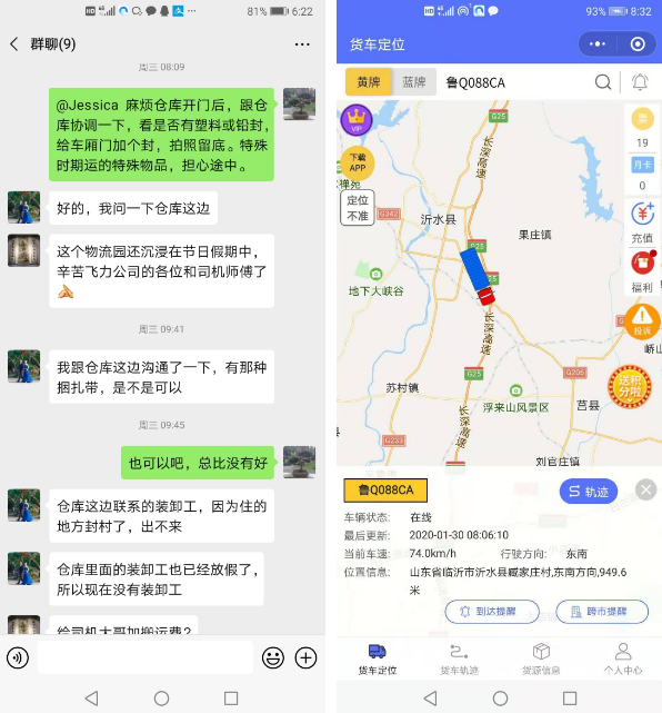 1月30日8點28分,口罩落倉完畢,特別感謝承擔運輸任務的王金友師傅,日夜兼程,盡自己所能一路南下,近1200公里,只用了12個小時。