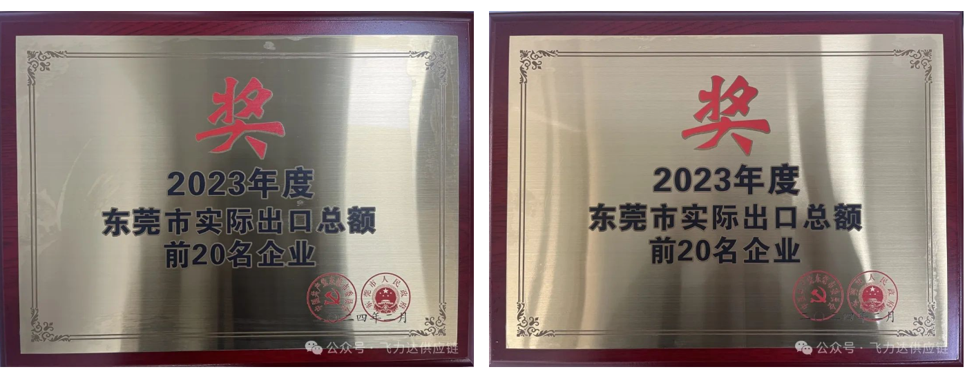新年伊始,喜訊傳來(lái)!東莞飛力達(dá)供應(yīng)鏈管理有限公司、東莞聯(lián)易達(dá)供應(yīng)鏈管理有限公司雙雙榮獲2023年?yáng)|莞市實(shí)際出口總額前20名企業(yè)!