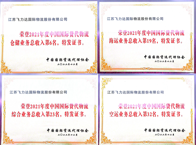 TOP10!飛力達(dá)股份再次上榜“中國(guó)貨代物流企業(yè)百?gòu)?qiáng)榜”