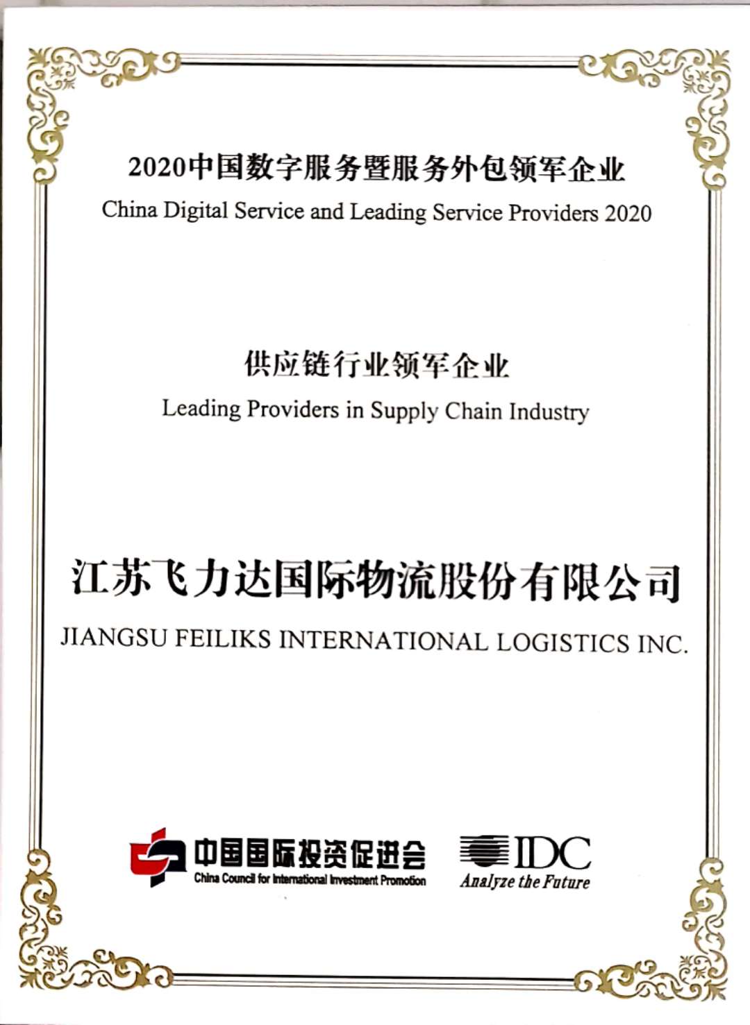 2020年10月19日-21日,在杭州洲際酒店舉行的“第十一屆中國國際服務(wù)外包交易博覽會”頒獎典禮上,飛力達(dá)股份斬獲“2020中國數(shù)字服務(wù)暨服務(wù)外包領(lǐng)軍企業(yè)”以及“供應(yīng)鏈行業(yè)領(lǐng)軍企業(yè)”兩項殊榮。