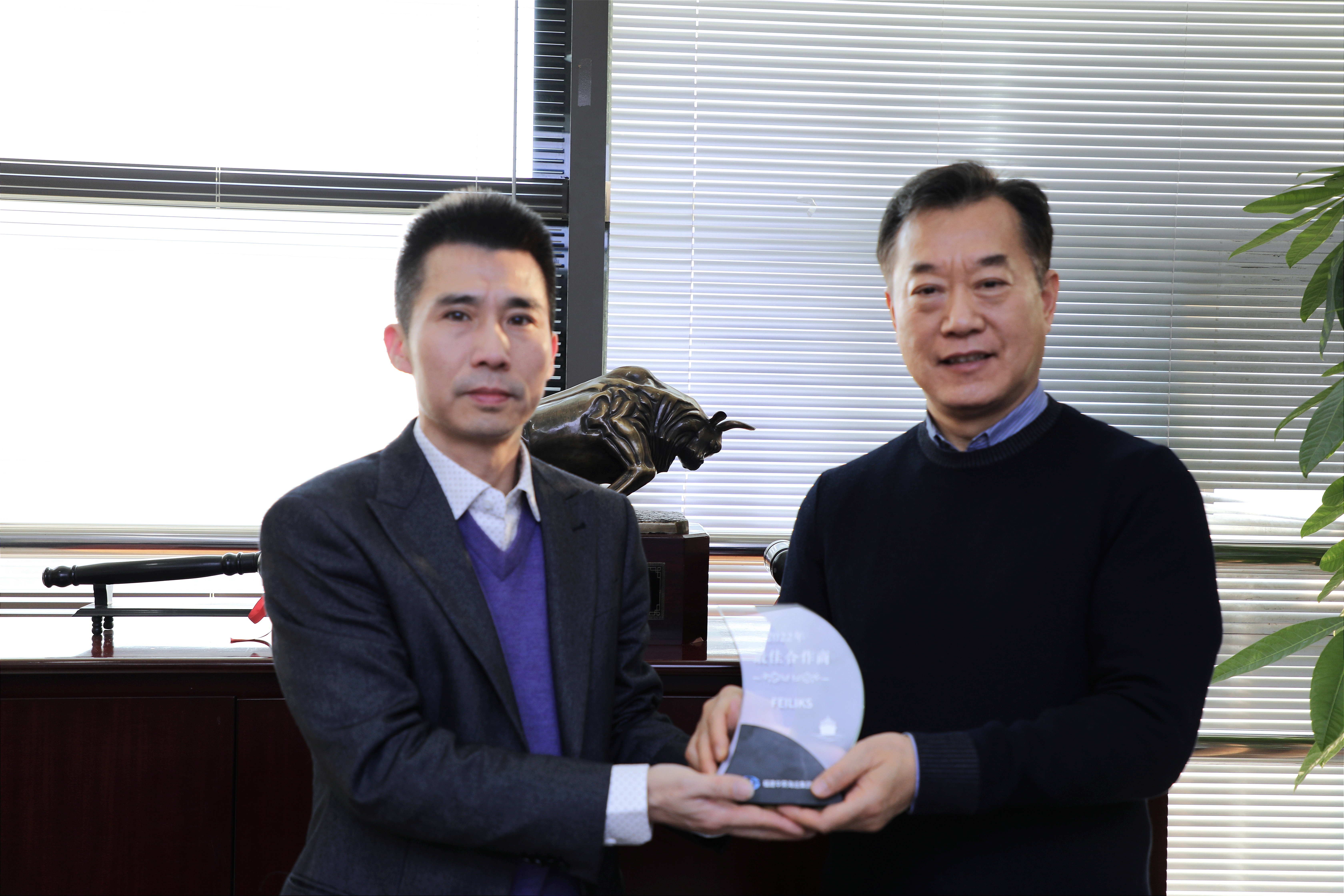 又一嘉獎!飛力達股份榮獲福建華榮海運“最佳合作商”獎 作者: feiliks 發(fā)布于: 2023-02-22 出版于: 公司新聞 2023年2月,公司合作伙伴福建華榮海運集團股份有限公司總經(jīng)理陳堅舉一行親臨飛力達授予“最佳合作商”榮譽,飛力達董事長姚勤接待并領(lǐng)取獎杯。(從左至右:華榮總經(jīng)理陳堅舉? 飛力達董事長姚勤)福建華榮海運主要航線布局華南地區(qū),也是較早一批進駐太倉港的船東,主要航線為太倉-臺灣。經(jīng)過雙方十余年的深入合作,2022年飛力達取得了全年訂艙量排名第一的好業(yè)績。未經(jīng)允許 ?不得轉(zhuǎn)載